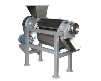 該機(jī)用途廣泛,可針對大型果蔬進(jìn)行榨汁。物料經(jīng)過一級破碎控制大小,再通過螺軸二級破碎向前推進(jìn),在螺旋的推進(jìn)下受壓,其壓榨的汁液通過過濾網(wǎng)流入底部的盛汁器,而廢料則通過螺旋及調(diào)壓的錐形部分之間形成的環(huán)狀空隙排出。從而達(dá)到汁與渣自動(dòng)分離的目的。